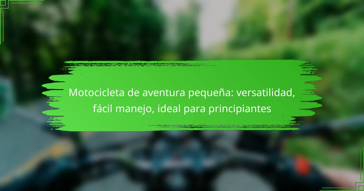 Una motocicleta de aventura pequeña es un tipo de moto diseñada para ofrecer versatilidad y facilidad de manejo, especialmente adecuada para principiantes. Estas motocicletas suelen ser ligeras, con una altura de asiento accesible y características que permiten tanto el uso en carretera como en terrenos off-road.