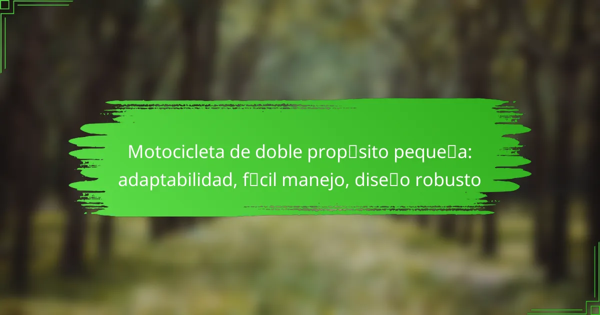 Una motocicleta de doble propósito pequeña es un vehículo diseñado para ofrecer versatilidad en diferentes terrenos, combinando características de motocicletas de carretera y de off-road. Estas motos son ideales para quienes buscan una opción ligera y manejable para aventuras en la ciudad y fuera de ella.
