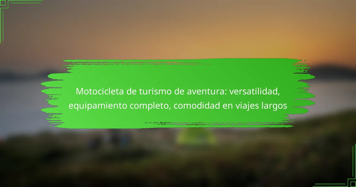 Una motocicleta de turismo de aventura es un tipo de moto diseñada para ofrecer versatilidad en diferentes terrenos y comodidad en viajes largos. Estas motocicletas combinan características de modelos de turismo y de enduro, permitiendo a los motociclistas explorar tanto carreteras pavimentadas como caminos off-road.